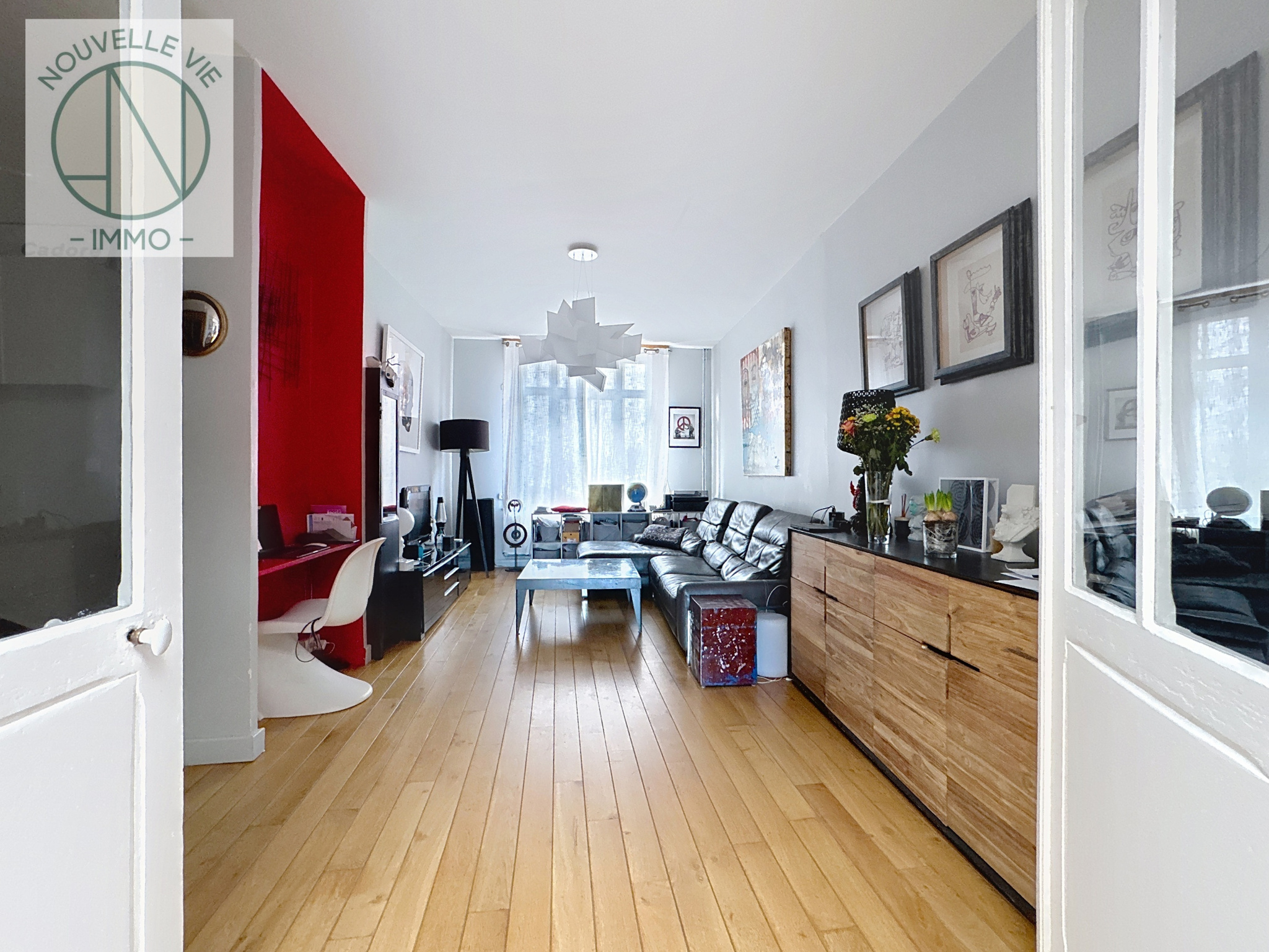 • un séjour spacieux avec belle hauteur sous plafond et parquet ancien,