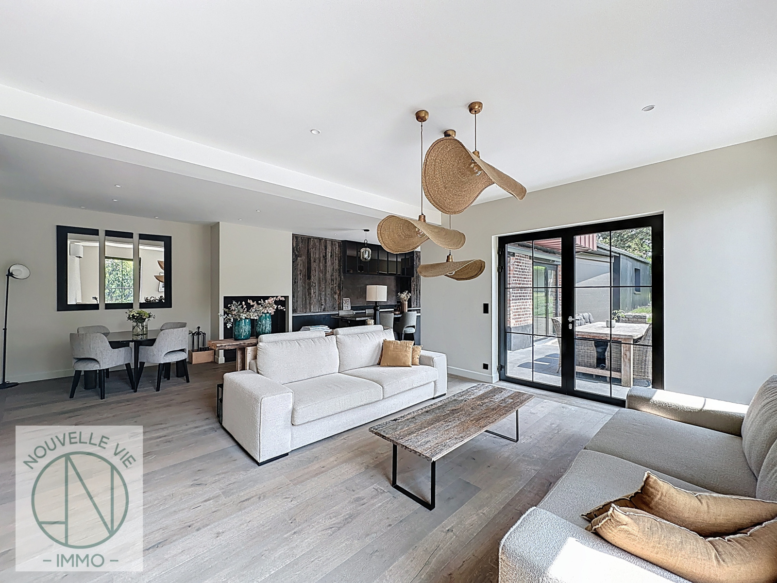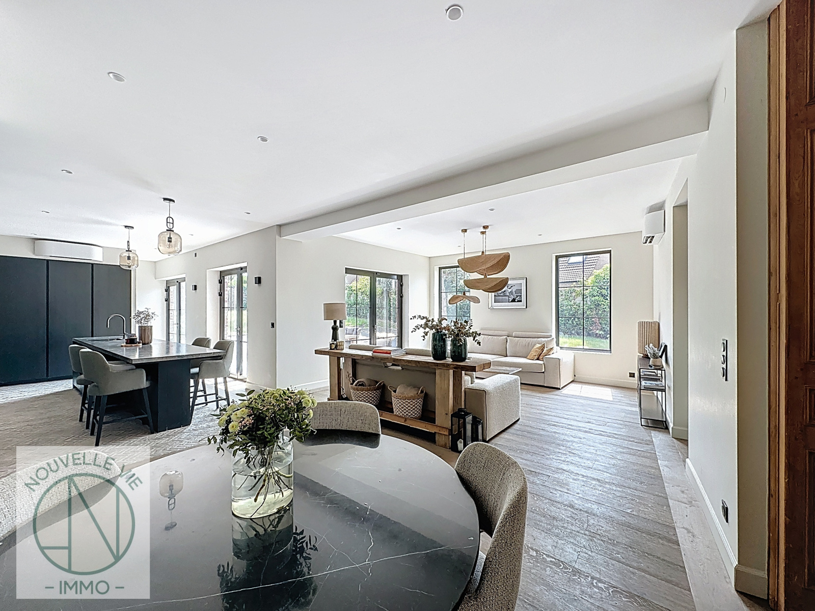 Dès l’entrée, vous serez séduits par ses volumes généreux et ses prestations haut de gamme. La pièce de vie d’environ 70 m² allie élégance et confort avec un salon chaleureux agrémenté d’une cheminée feu de bois, une salle à manger conviviale et une cuisine sur mesure parfaitement équipée.