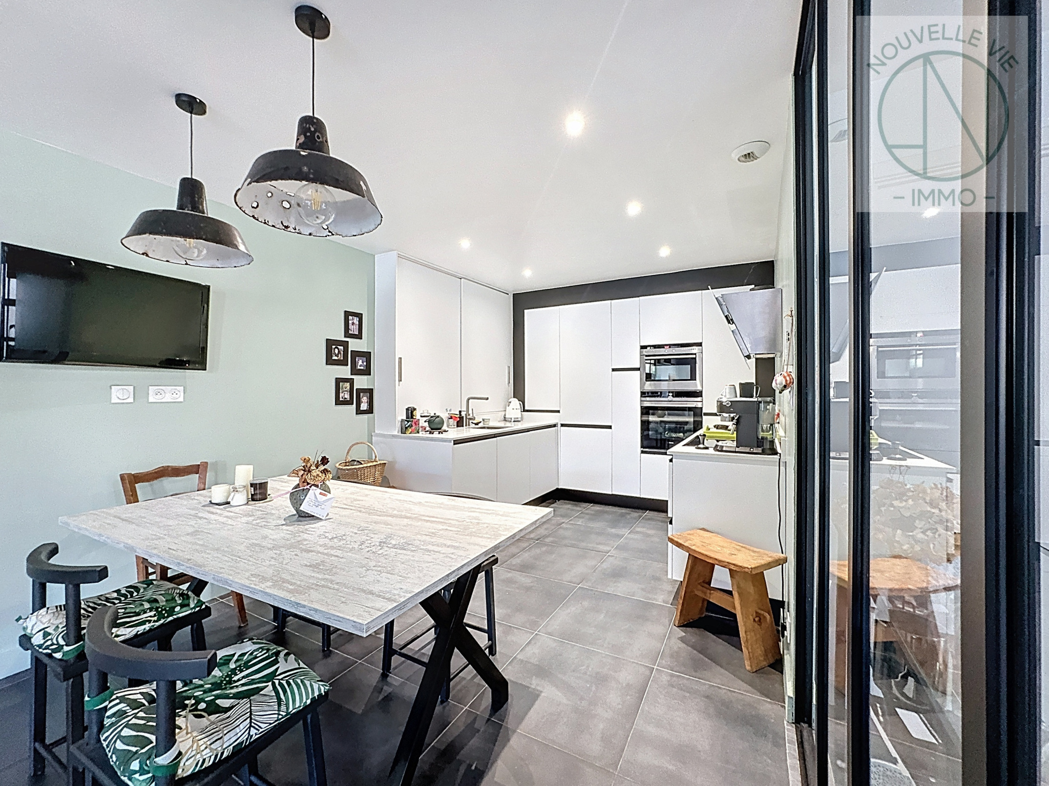 Au rez-de-chaussée, profitez d’une spacieuse pièce de vie de 65 m² avec poêle à granulés et cuisine ouverte, moderne et équipée, idéale pour recevoir famille et amis.